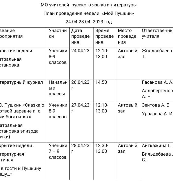 А.С. Пушкин оқуларының аудандық кезеңінің байқауы