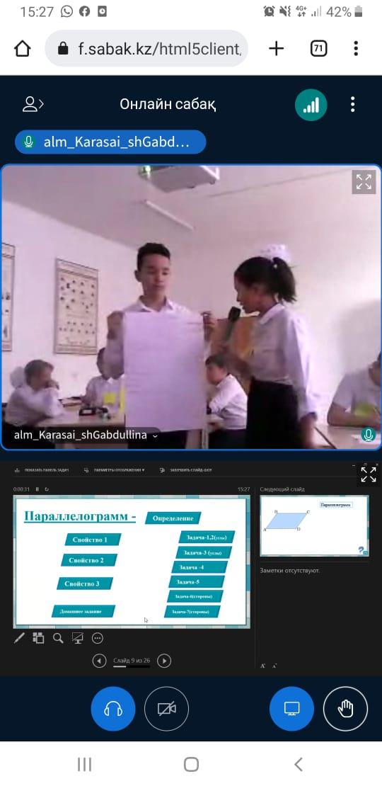 2022 жылдың 07 қыркүйегінде сағат 15:00 (Астана уақыты) «Almatinskaya oblast» бөлмесінде математика пәнінен 8 сынып оқушыларына облыстық интерактивті сабақ өтеді (орыс тілінде).Тақырыбы: " Параллелограмм, ромб, прямоугольник, квадрат, их свойства и признаки "