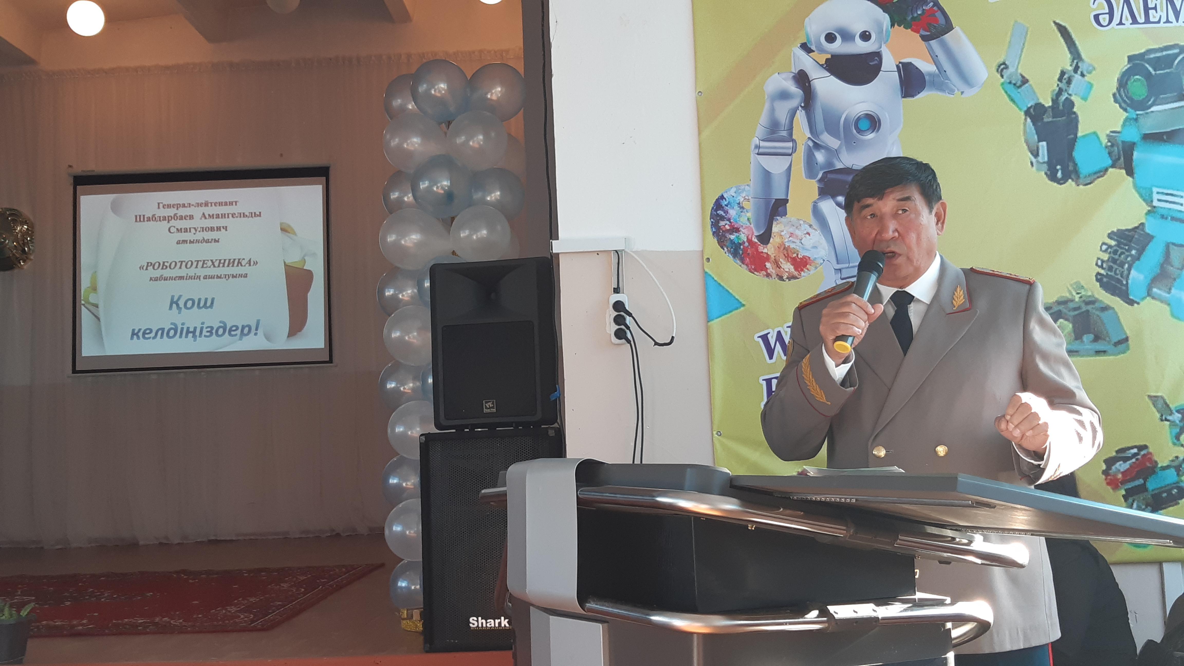 14.11.2019 ж. мектеп әкімшілігі мен МИФ әдістемелік бірлестігінің ұйымдастыруымен «Генерал-лейтенант Шабдарбаев Амангельды Смагулович атындағы робототехника кабинетінің" салтанатты ашылуы өткізілді.