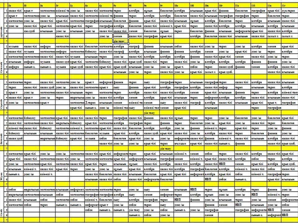 Сабақ кестесі