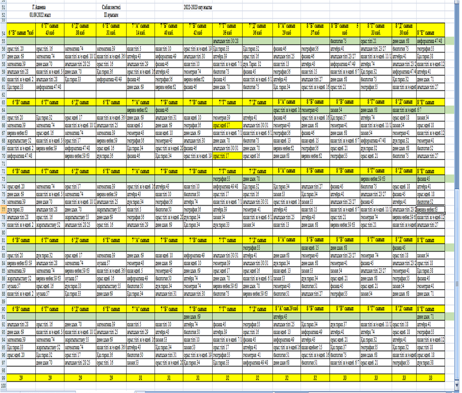 2022-2023 оқу жылына сабақ кестесі